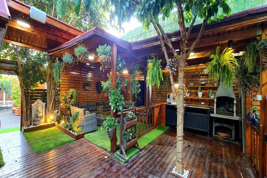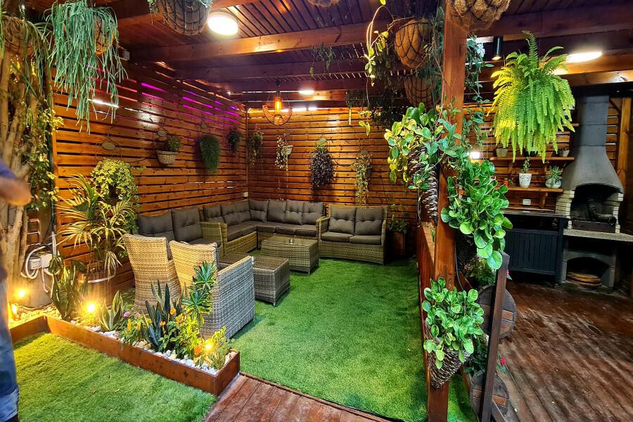 חצר ענקית ומטופחת הכוללת מתחם ספא פרטי מפנק עם סאונה גדולה, בריכת שחייה יפיפייה וג'קוזי ספא מרווח, פינות ישיבה מוצלות ומקורות, פינת ברביקיו מסודרת, תאורת גן, שולחן פינג פונג ומתחם משחקים לילדים.